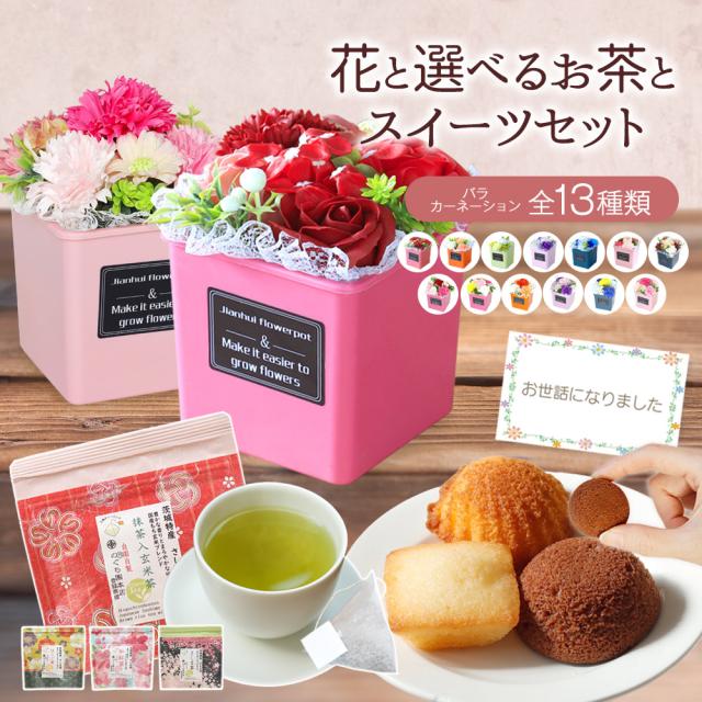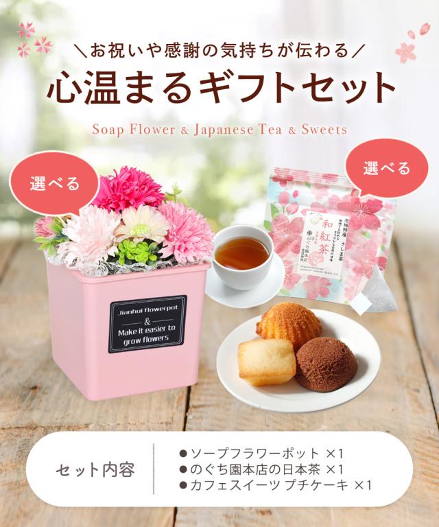 スイーツセット お茶セット 結婚祝い 記念日 退職祝い 出産祝い お祝い メッセージカード フラワーソープ 古稀 米寿 病院見舞 快気祝い お見舞い