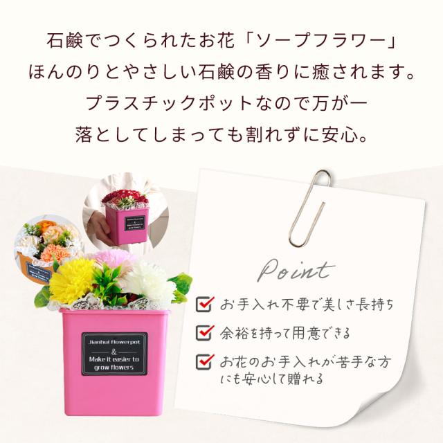 バラ 薔薇 カーネーション 豪華 そのまま飾れる ローズ 枯れない シャボンフラワー 石鹸素材 香る フラワーギフト フラワーアレンジメント POT 置き型 インテリア ポットアレジメント
