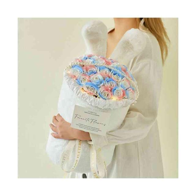花束 プレゼント お祝い 女性 花束 21輪 イベント お祝い 誕生日 ソープフラワー バラ 薔薇 記念日 ブーケ クリスマス 造花 おしゃれ 母親 発表会 妻 彼女 結婚式 枯れない LEDライト付き かわいい ギフト