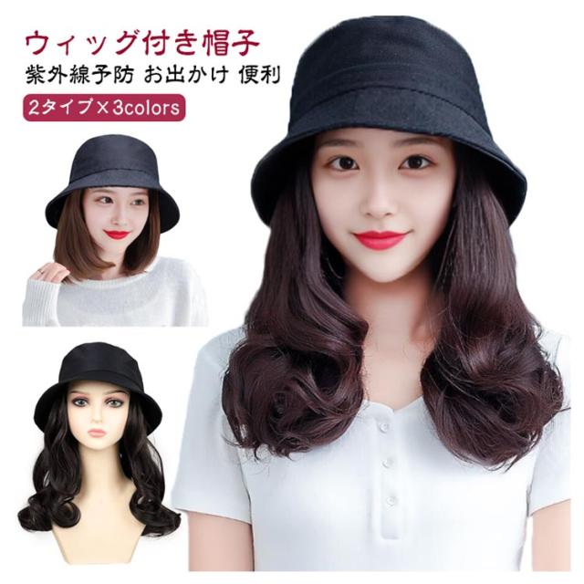 ボブ 帽子付きウィッグ 髪付き 毛付き帽子 ストレート/カール 可愛い ウィッグ付き帽子 医療用かつら ウィッグ付き帽子 バケットハット かつら付き 春夏 レディース 帽子 ナチュラル 帽子付き ウィッグ ハット つけ毛 帽子ウィッグ