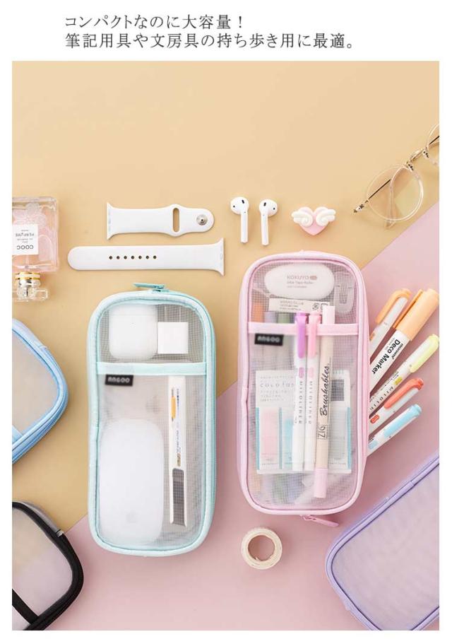 クリア 透明 メッシュ 女の子 筆箱 大容量 ペンポーチ 小学生 中学生 高校生 シンプル おしゃれ 筆入れ 小物入れ ポーチ 筆箱 男の子 文房具収納 韓国 ふでばこ