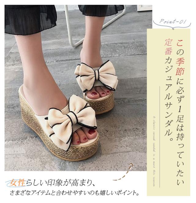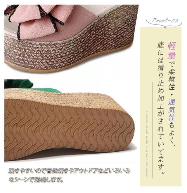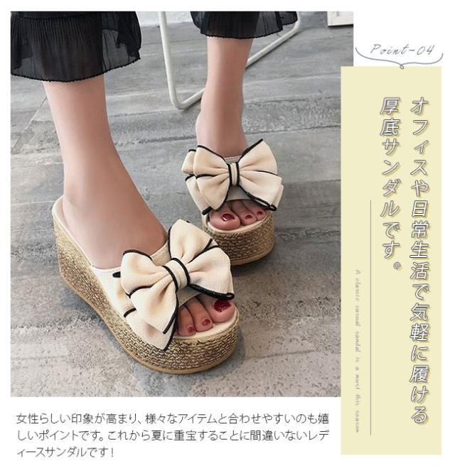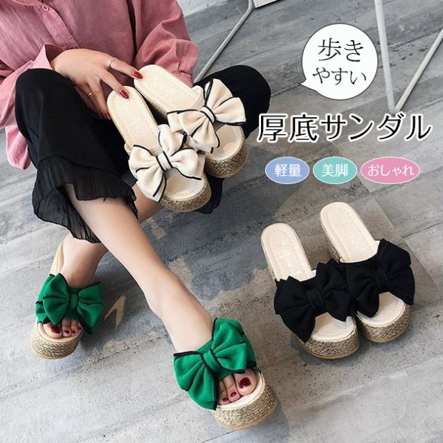 厚底サンダル レディース ウエッジソール サマー リボンサンダル リゾートサンダル 歩きやすい ヒールサンダル 痛くない 美脚シューズ コンフォート 大きいサイズ