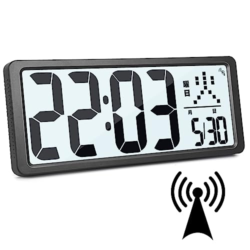 Blueekin デジタル時計 電波 LCD大画面 大型 全視野対応 壁掛け置き兼用 バックライト付き 目覚まし時計 大音量 タイマー機能 卓上 電池