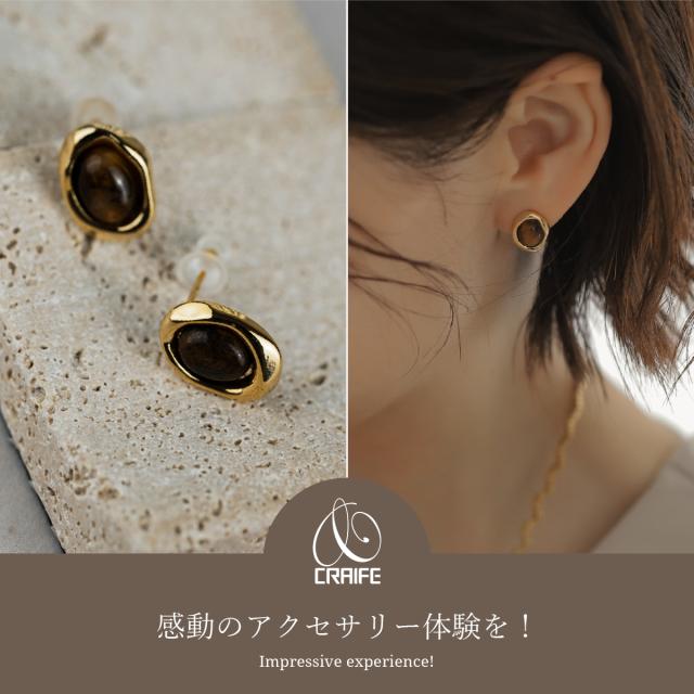 ピアス 金属アレルギー対応 18Kコーティング レディース 大人 モダン かわいい エレガント ジュエリー ストーン キャツアイ ゴールド 送料無料 プチプライス高見え CRAIFE