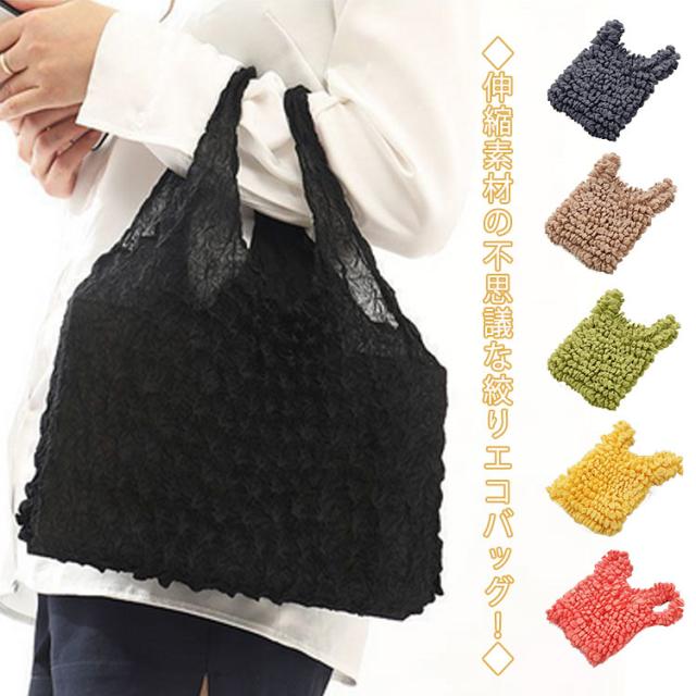 エコバッグ 送料無料 くしゅくしゅ トートバッグ 超コンパクト エコ バッグ レジ袋 お洒落 軽量 ランチバッグ A4 大容量 小さめ プリーツ 伸びる ミニバッグ 畳まない 大人 カジュアル シンプル レディース マイバッグ コンパクト