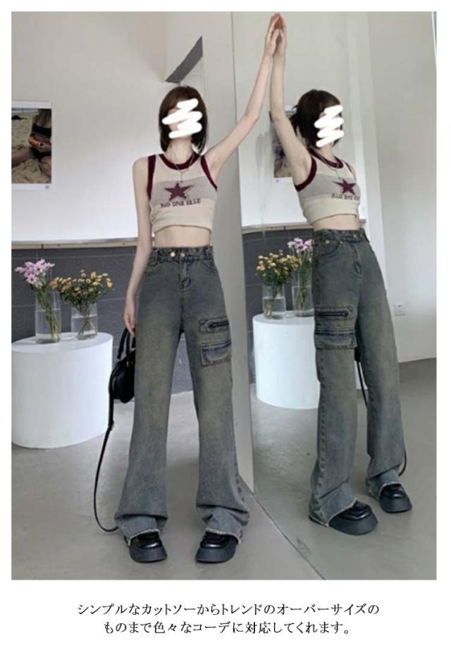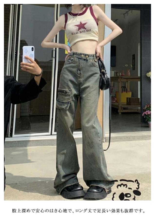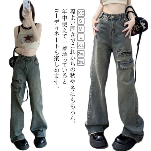 デニム パンツ レディース ワイドパンツ ロング パンツ ボトムス デニム ジーンズ 大きいサイズ ガウチョパンツ 体型カバー ロングパンツ 春 秋 冬 ハイウエスト 着痩せ 美脚 通勤 ゆったり カジュアル 上品 きれいめ 通勤 OL 20代 30代 送料無料
