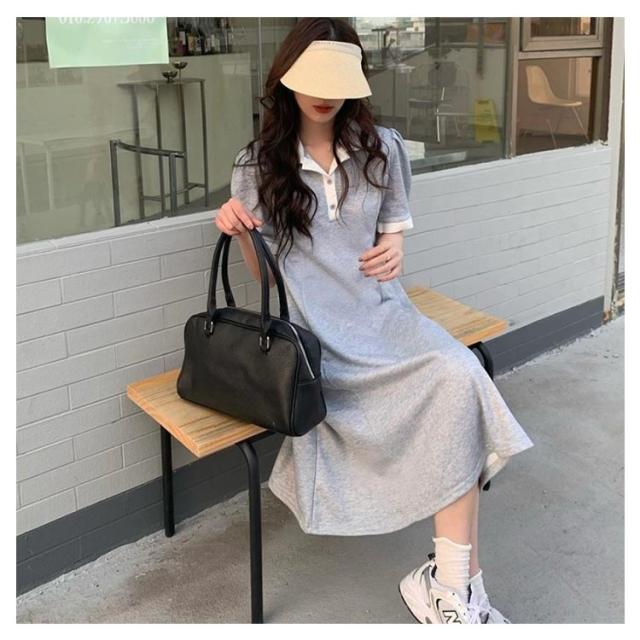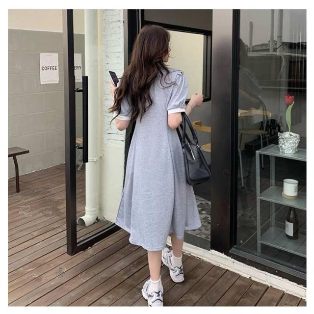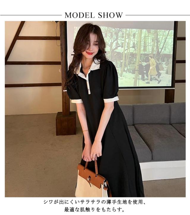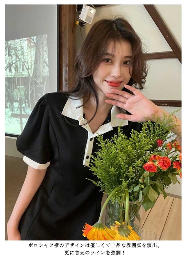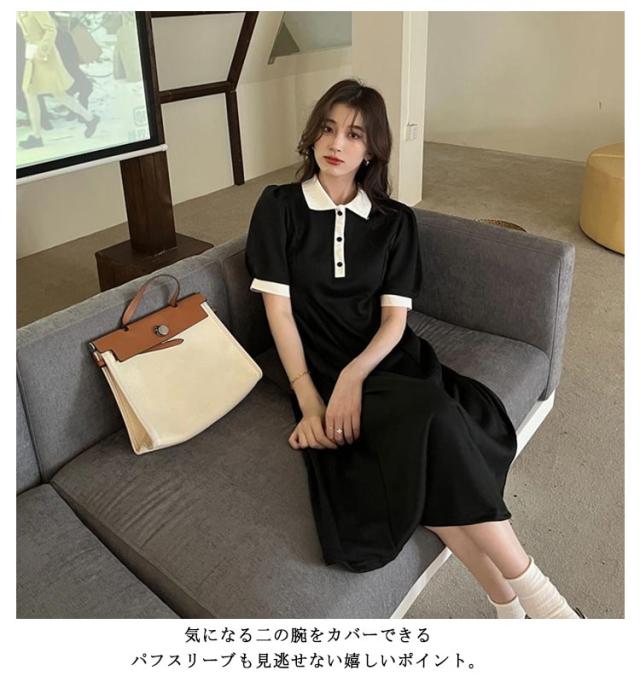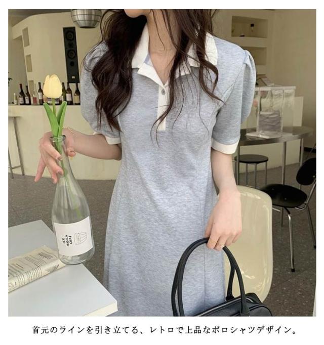 ポロワンピース ポロシャツ ワンピース ワンピース ミモレ丈 半袖 ロング丈 ロングワンピ 夏 サマーワンピース レディース ポロシャツワンピ パフスリーブ Tシャツワンピ 襟付き 大きいサイズ 送料無料