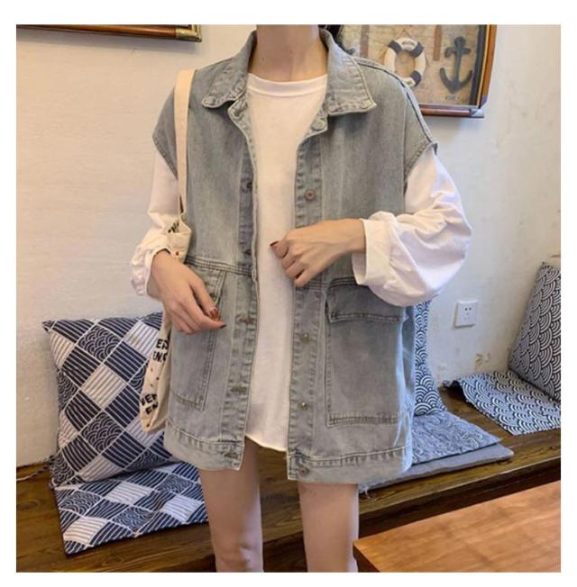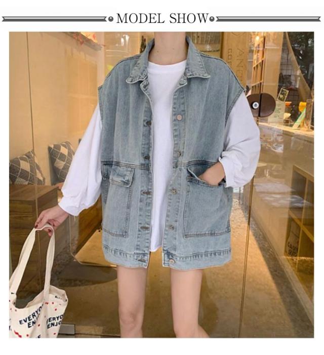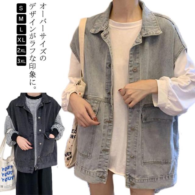 レディース ベスト デニム ジャケット 可愛い 日系 キャミ ノースリーブ アウター 簡単 学院風 無地 ノースリーブ トップス 女性 カジュアル お出かけ カジュアル 重ね着 通勤 OL 送料無料 ファッション感 ブルー ブラック 学生 少女 大人