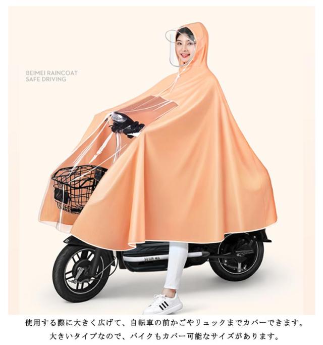 | 雨天時、自転車に乗る際に役立つ大きいつば付きの「自転車用レインコート」。 ツバだけではなく、フェイスカバーも付いております。 防水にこだわったしっかりとした生地! 袖がないタイプなので、雨の侵入を防ぐだけでなく思わぬ事故の防止に役立ちます。 使用する際に大きく広げて、自転車の前かごやリュックまでカバーできます。大きいタイプなので、バイクもカバー可能なサイズがあります。 上質な素材を採用し、透湿性に優れ、汗や蒸気を効率よく外部に排出することが可能。また、拭くだけ乾くことができるので、お手入れも簡単! | |