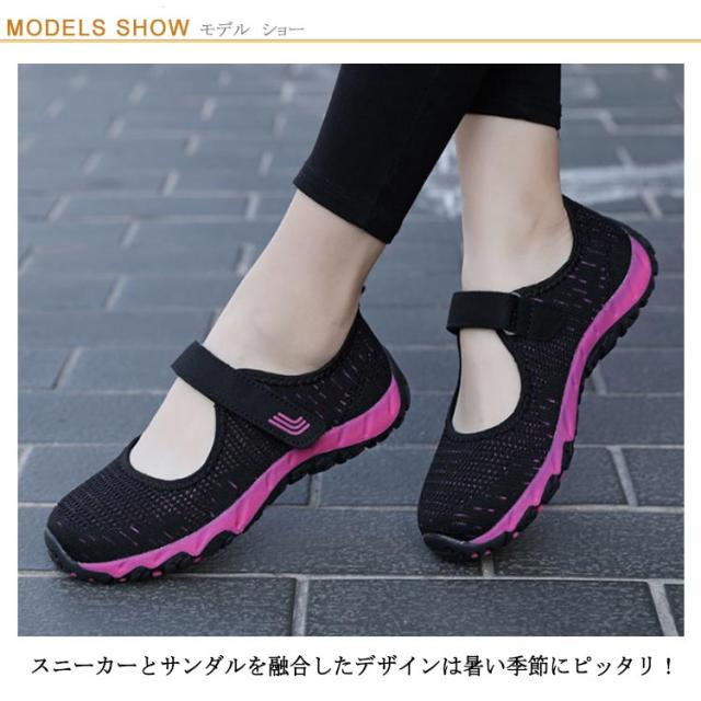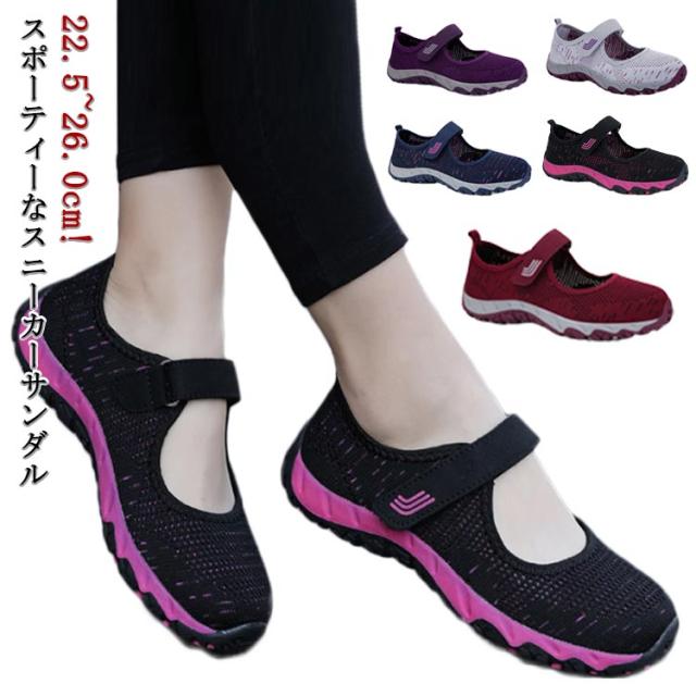 | 22.5~26.0cm!スポーティーなスニーカーサンダル スニーカーとサンダルを融合したデザインは暑い季節にピッタリ! 目の大きなメッシュ生地を使用し、足元を涼しくスポーティーに飾ります。 トレンド感のあるしっかりとしたスニーカーソールがアクセントに♪ 甲のベルトでサイズ調整できるので、しっかりとホールド感があり安心した履き心地です。 クッション性のあるソールは軽くて歩きやすいので、アクティブなシーンにおすすめの一足です。 豊かなサイズを用意したので女性にも男性にも使えます。ご家族のプレゼントにもオススメ。 | |