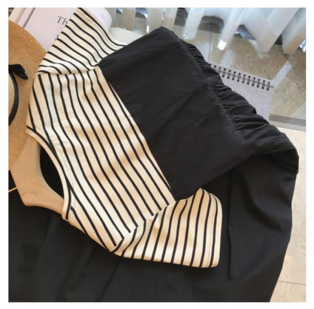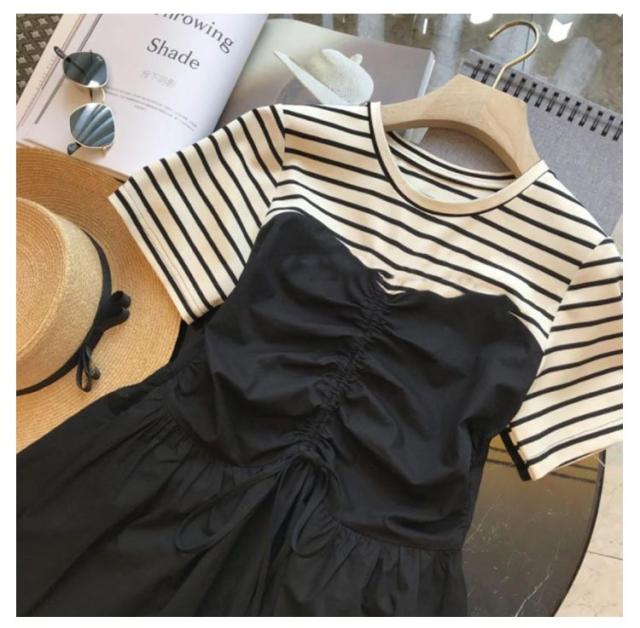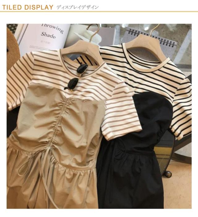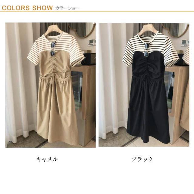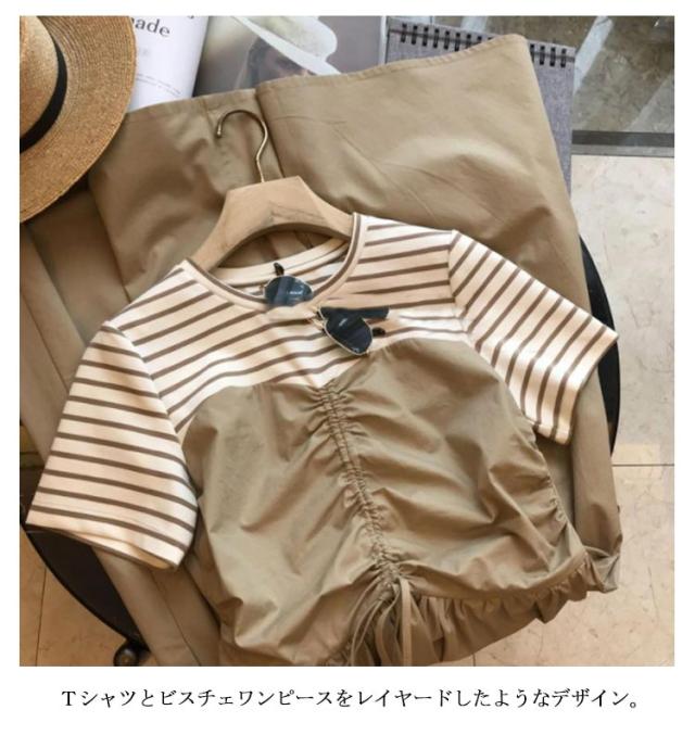 | 1枚でいまどきのスタイルが完成するビスチェ風ドッキングワンピース。 Tシャツとビスチェワンピースをレイヤードしたようなデザイン。 1枚でサマになり、重ね着していない分、スッキリしたシルエット。 真夏も涼しくラクチンに過ごせるリラクシーなワンピースです。 布帛部分にはシャカシャカのナイロン素材を使用し、ウエスト部分にはドロストコードを施しました。 コードの絞り方次第でお好みのシルエットへと変化をつけられるのもうれしいアイテム! | |