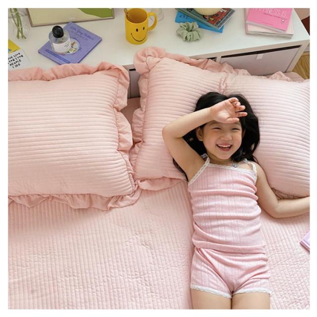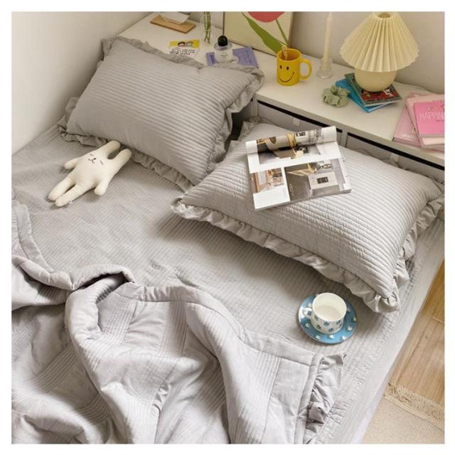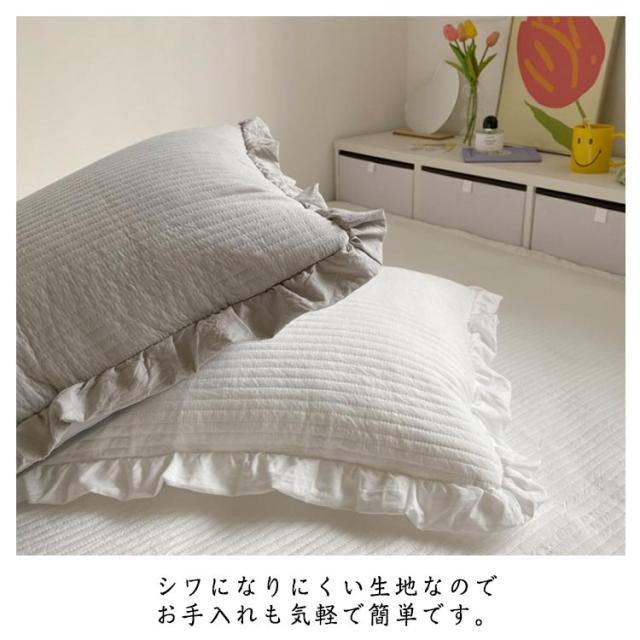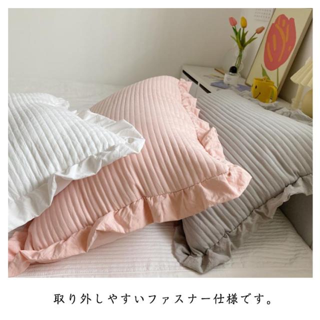 フリル枕カバー おしゃれ まくらカバー ピローケース キルト キルティング 枕カバー 48×74cm 寝具 かわいい 韓国風 ピンク ベージュ グレー ホワイト 送料無料