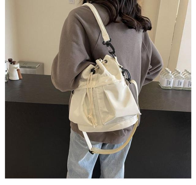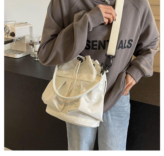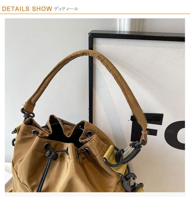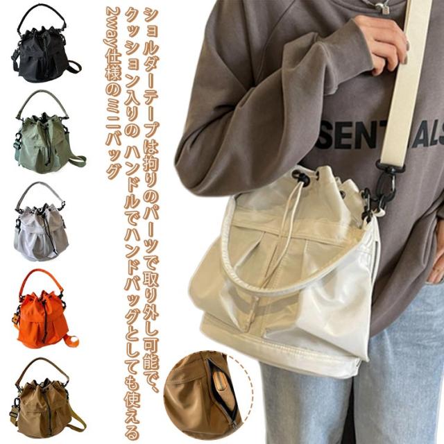 | ショルダーテープは拘りのパーツで取り外し可能で、クッション入りのハンドルでハンドバッグとしても使える2way仕様のミニバッグ。 収納スペースは、財布やスマホなど身近に持ち歩く貴重品に加え、広いマチ幅でミニボトルなども収まる見た目以上の収納力◎。 間口が大きく開く巾着タイプなので、中身が見やすく、開け閉めも簡単です。 デザインも今期流行のミリタリー調のデザインで持っておけばトレンド感が出るアイテム!! 素材の光沢感もクラシックかつ高級感があり、オールシーズンで使用可能。 普段使いはもちろん、アウトドアやレジャーなど幅広いシーンで活躍すること間違いなしです。オシャレなドローストリングデザイン(巾着式)で程よいサイズ感がpointです。 | |