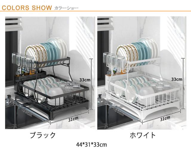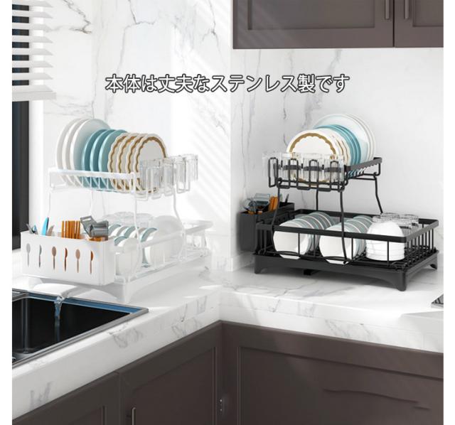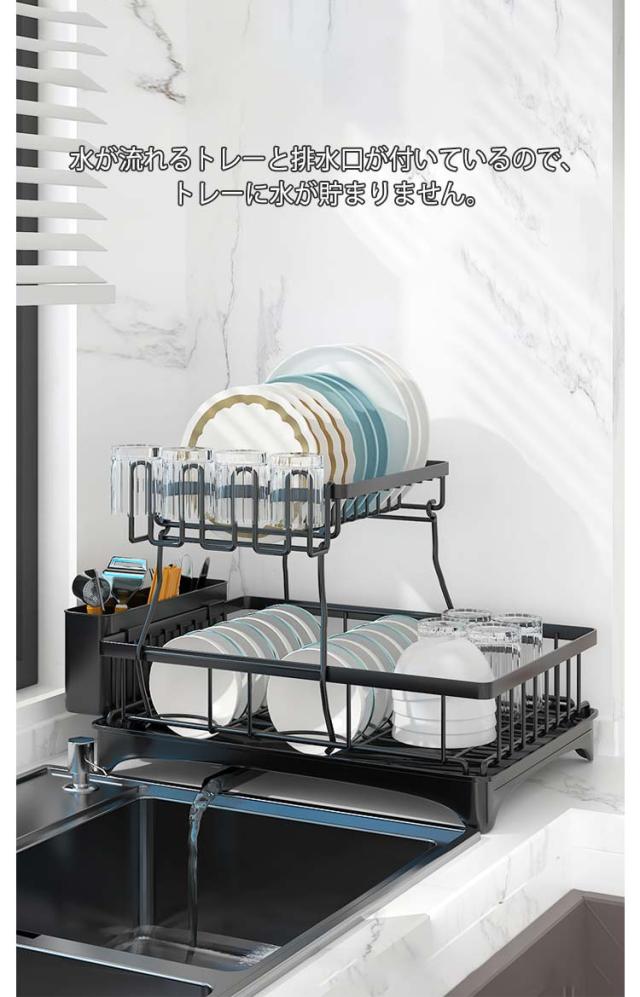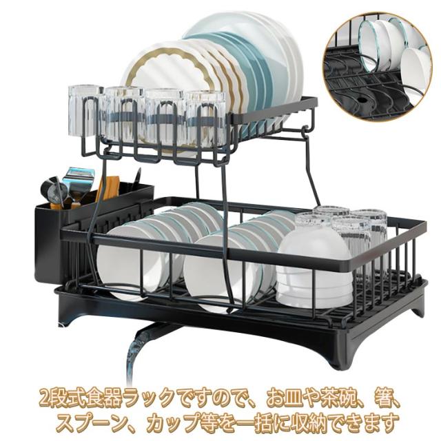 送料無料 水切りラック 大容量 2段 水切りかご シンク上 水切りカゴ ステンレス 食器 水切り ラック ディッシュラック 省スペース コンパクト 流し台 水きりトレー 食器 横置き 流れる 箸立て まな板立て 皿 乾燥