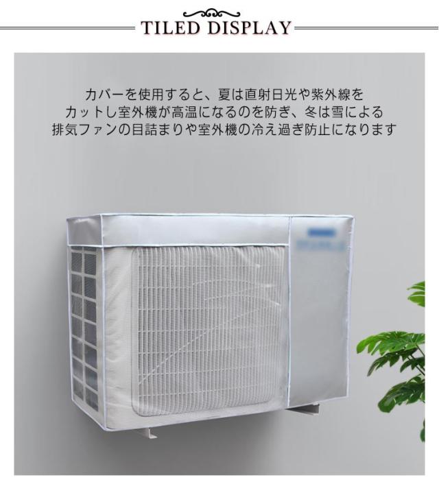 | 2タイプ エアコン室外機カバー 装着簡単?取り外し不要 カバーを使用すると、夏は直射日光や紫外線をカットし室外機が高温になるのを防ぎ、冬は雪による排気ファンの目詰まりや室外機の冷え過ぎ防止になります オールシーズンに使用可能 | |