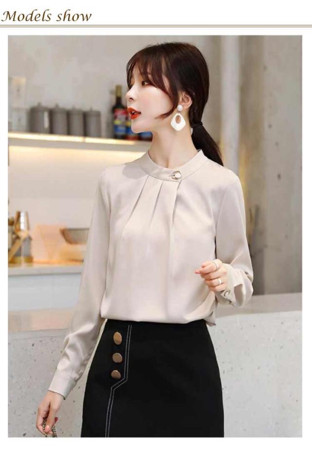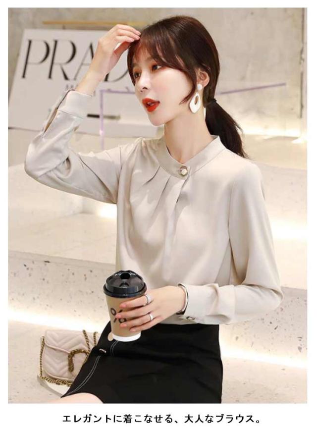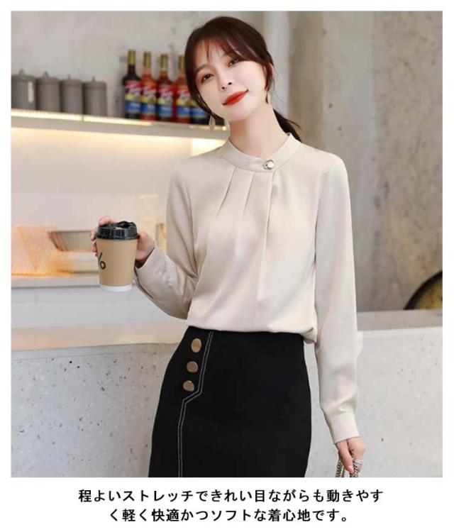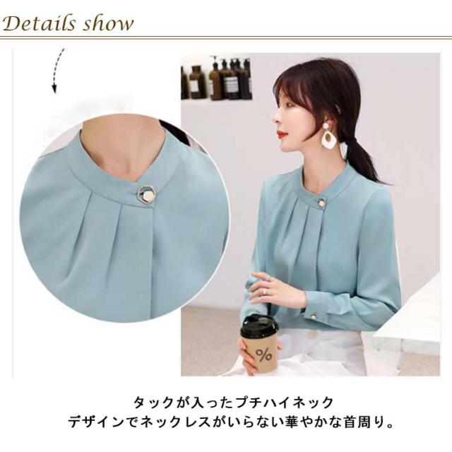 フロントタック プチハイネック ブラウス フォーマル ハイネック シャツ ブラウススーツ レディース ギャザー フォーマルブラウス 長袖ブラウス スーツインナー オフィスブラウス OL ミセス セレモニー 長袖 通勤 20代 30代 40代 50代 トップス
