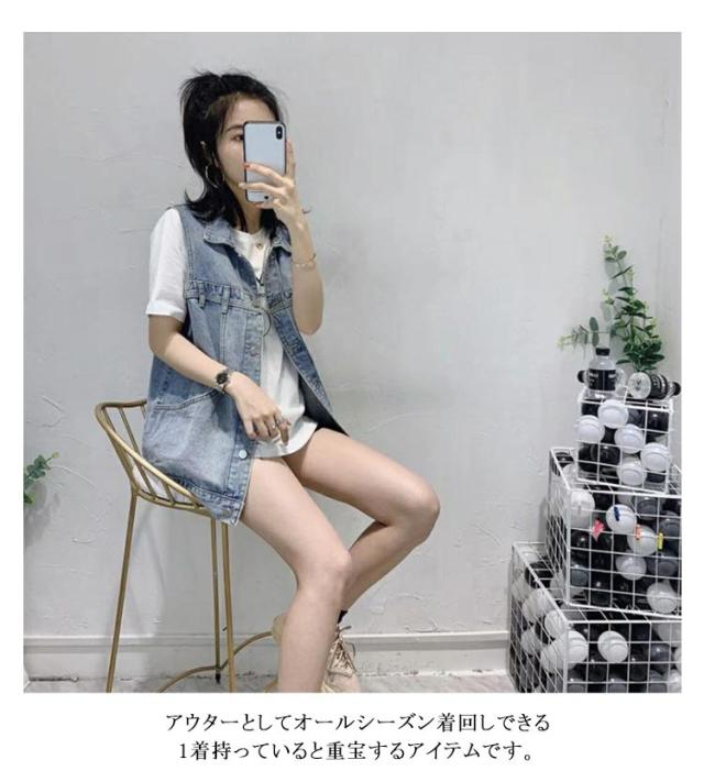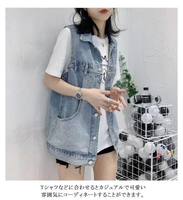 前開き デニム レディース きれいめ 体型カバー おしゃれ ジレ アウター カジュアル 大人 ベスト トップス コーデ カジュアル ノースリーブ ジレー アパレル オーバーサイズ レディース 着痩せ 可愛い デニム ゆったり 人気 春 夏 秋 韓国