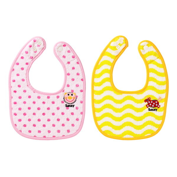 ★ Sassyの人気のキャラクターがモチーフとなった、ふんわりやわらかなタオルビブ。2段階のスナップボタンで首周りが調節可能。