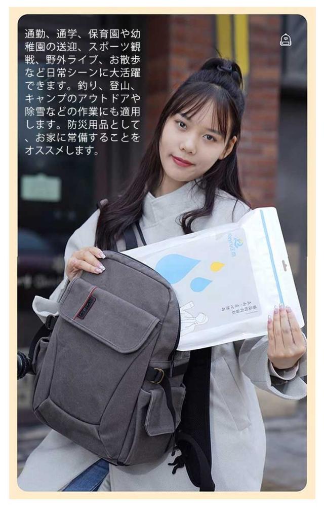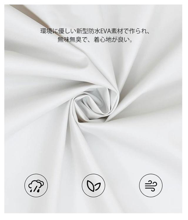 | どんな天気でも対応できる、楽に出かけるレインコート。日常での使いやすさを重視し、街歩きや自転車運転で便利な機能が満載! 通気設計を使用し、真夏や梅雨などの長時間着用にもベタつきなし。 透明な二重つば、飛沫防止、風よけ、雨よけ防止、雪よけ防止などの機能があり。 環境に優しい新型防水EVA素材で作られ、無味無臭で、着心地が良い。 大きめなポケツト付き! リュックを背負ったままでも自転車をこいいただけます。 通勤、通学、保育園や幼稚園の送迎、スポーツ観戦、野外ライブ、お散歩など日常シーンに大活躍できます。釣り、登山、キャンプのアウトドアや除雪などの作業にも適用します。防災用品として、お家に常備することをオススメします。 | |