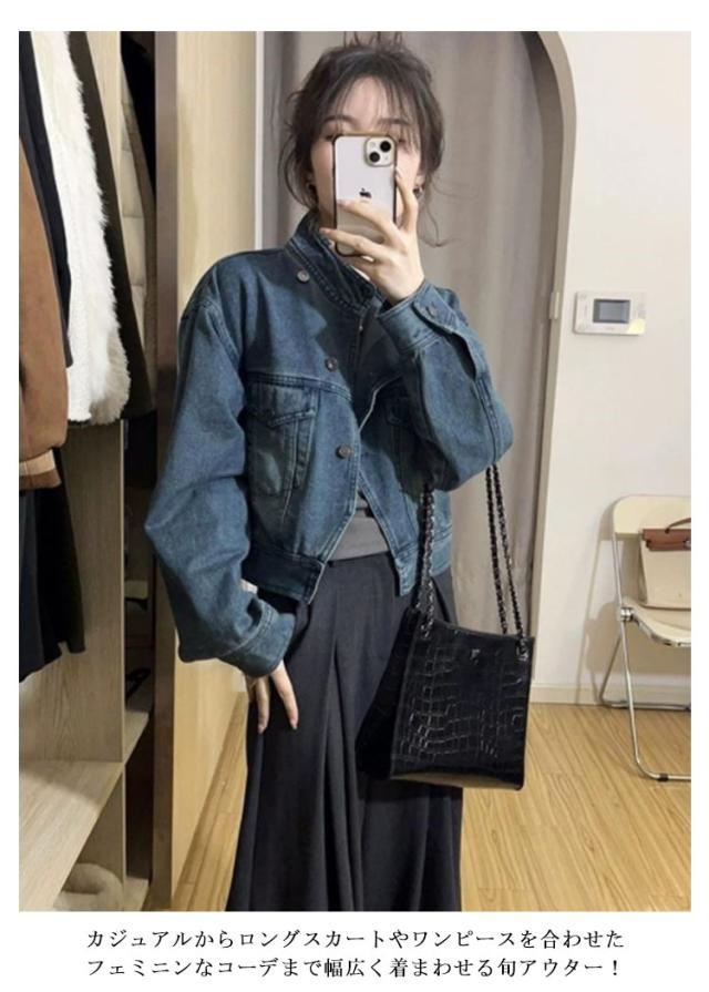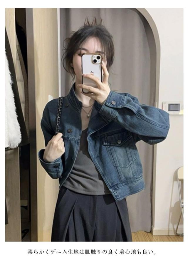 【S~2XL】 ジャケット コート 羽織 デニムジャケット 長袖 レディース Gジャン アウター スタンドカラー ノーカラー ノーカラージャケット ショート丈 ジャンパー ジーンズ 上品 春 秋 冬 カジュアル 無地 大人 【S~2XL】 おしゃれ きれいめ 大きいサイズ