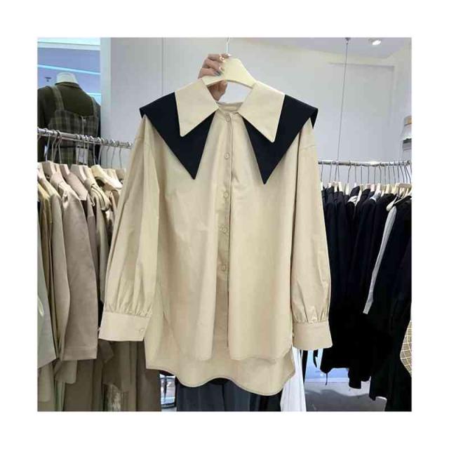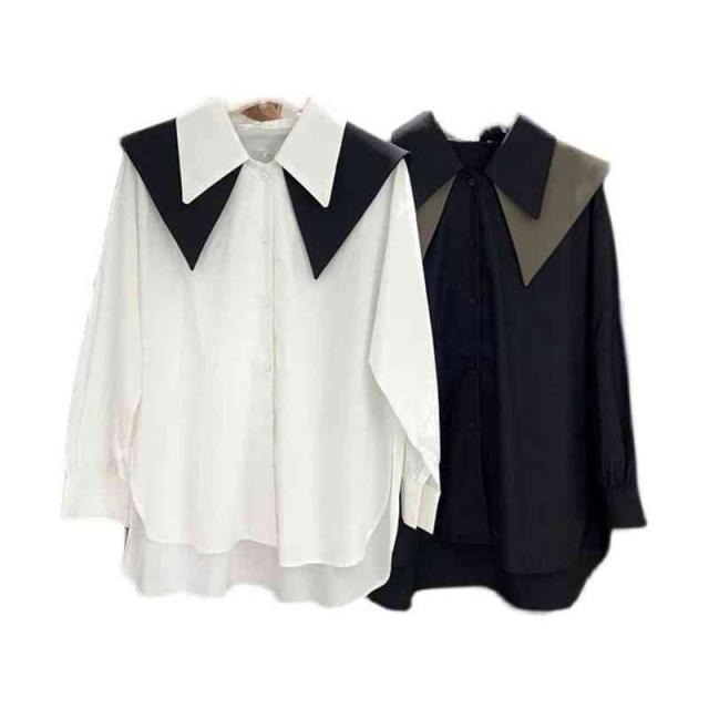セーラーブラウス ダブル襟 セーラーシャツ トップス 体型カバー 大きめ襟 シャツ レディース 長袖シャツ ブラウス セーラー ビッグ襟 シャツブラウス ゆったり 大人 可愛い オフィス 春夏 送料無料 無地 シンプル カジュアル