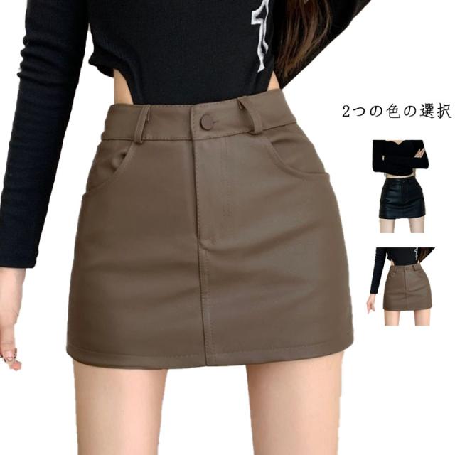 ミニスカート レディース フェイクレザースカート カジュアルスカート PU レザースカート インナーパンツ付きスカート ボトムス 無地 オフィス 通勤 大きいサイズ スカート ミニスカート レザースカート マイクロミニスカート ミニ丈 ミニスカート タイト 送料無料