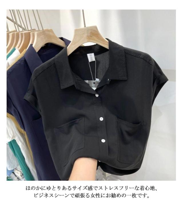 シフォンブラウス スキッパーシャツ トップス シフォン 夏ブラウス シワになりにくい ノーカラー スキッパー フォーマル とろみブラウス 半袖 ブラウス オフィス レディース ブラウス 春夏 スーツ インナー トップス ビジネス 通勤 入学式 卒園式