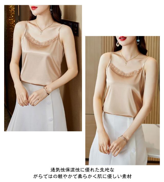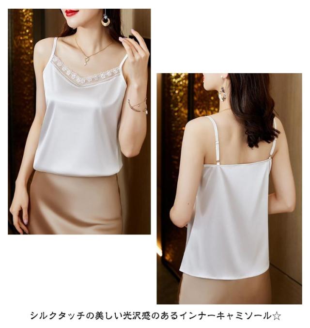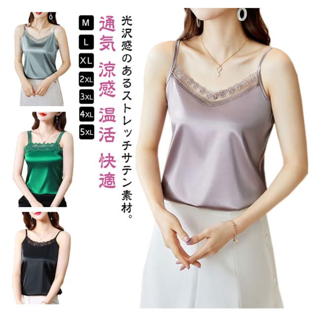 インナータンクトップ トップス インナーキャミソール サテンタンクトップ 光沢感のあるストレッチ サテンキャミソール シルク 汗取り フォーマル セクシー 春夏 タンクトップ ルームウェア 光沢感のあるストレッチ 肌着 レディース 敏感肌 通気 涼感 温活 快適 女性 母の日