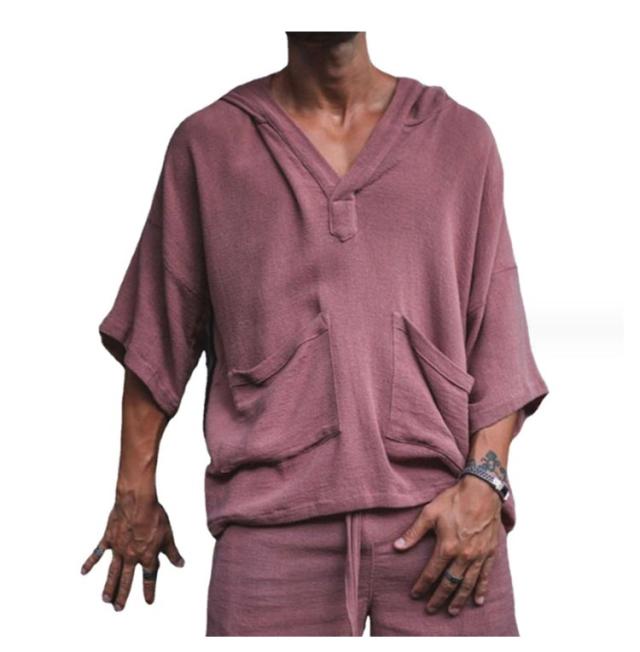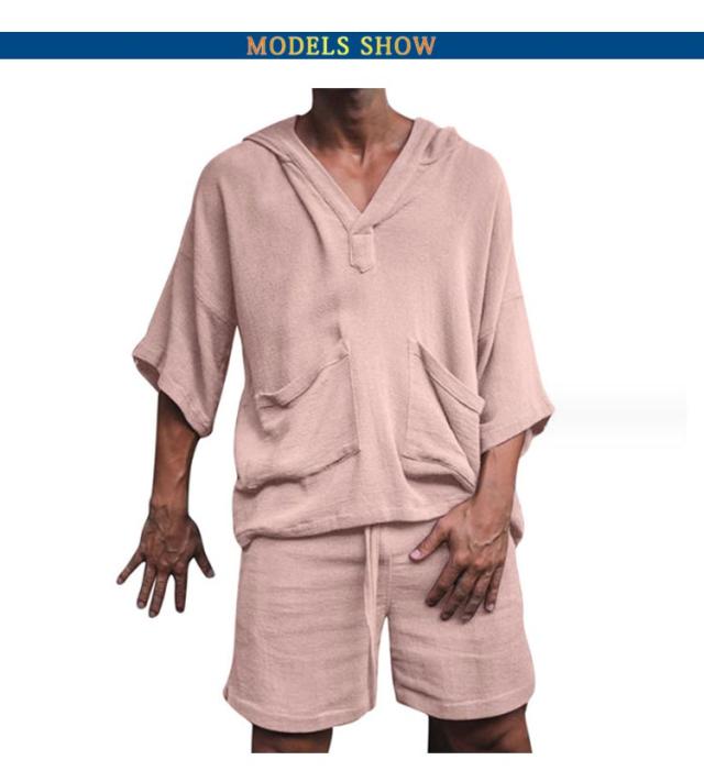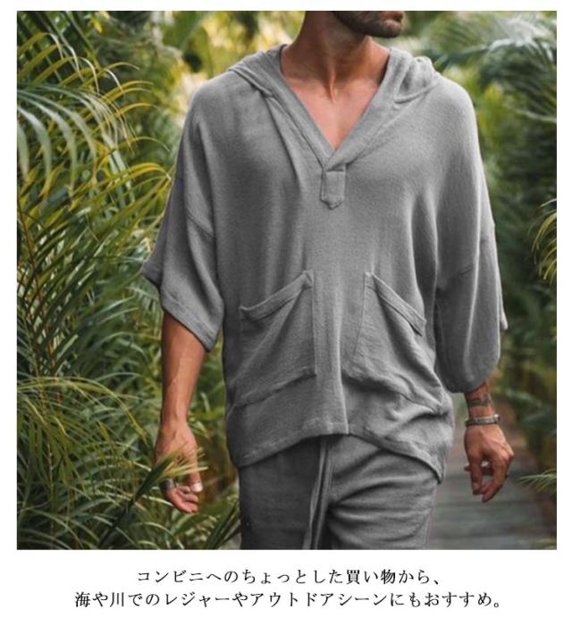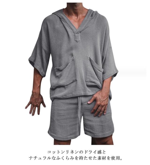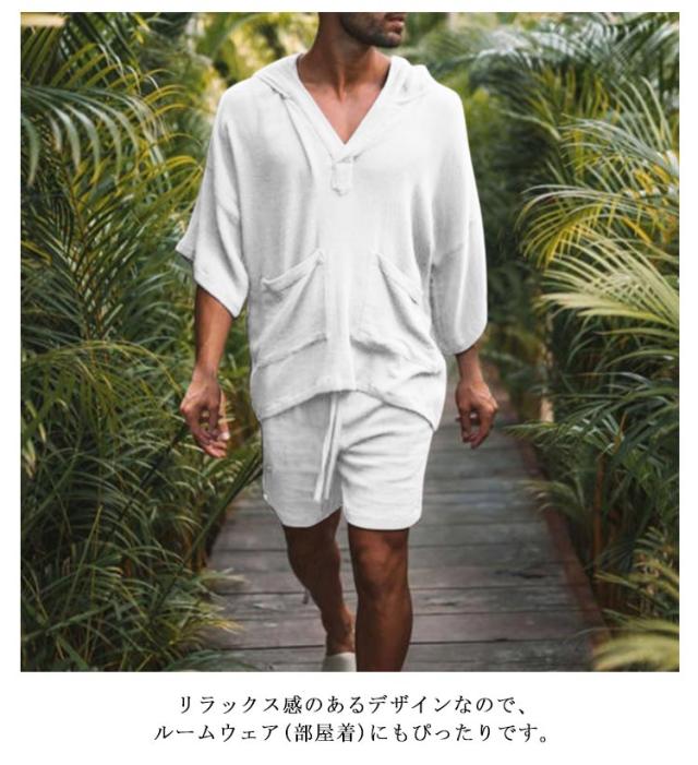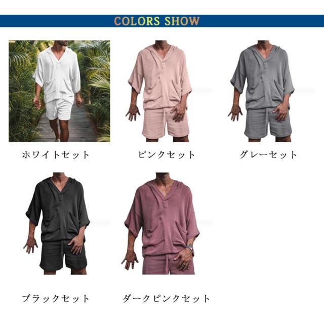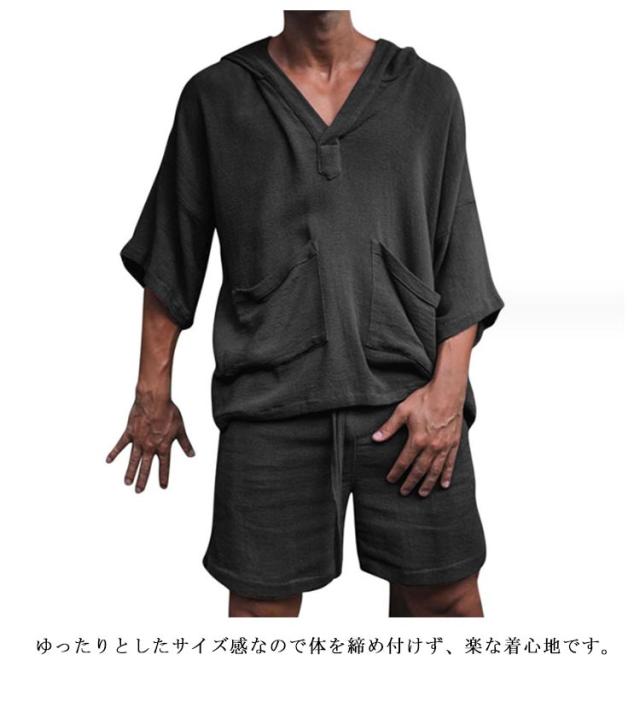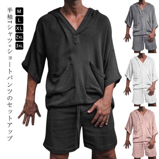 セットアップ ショートパンツ 夏物 サマー 綿麻 メンズ tシャツ Vネック Tシャツ 上下セット ハーフパンツ 半ズボン 短パン ゆったり カジュアル 大きいサイズ 体型カバー セットアップ ナチュラル 半袖 部屋着 無地 シンプル 夏服 ルームウエア 薄手