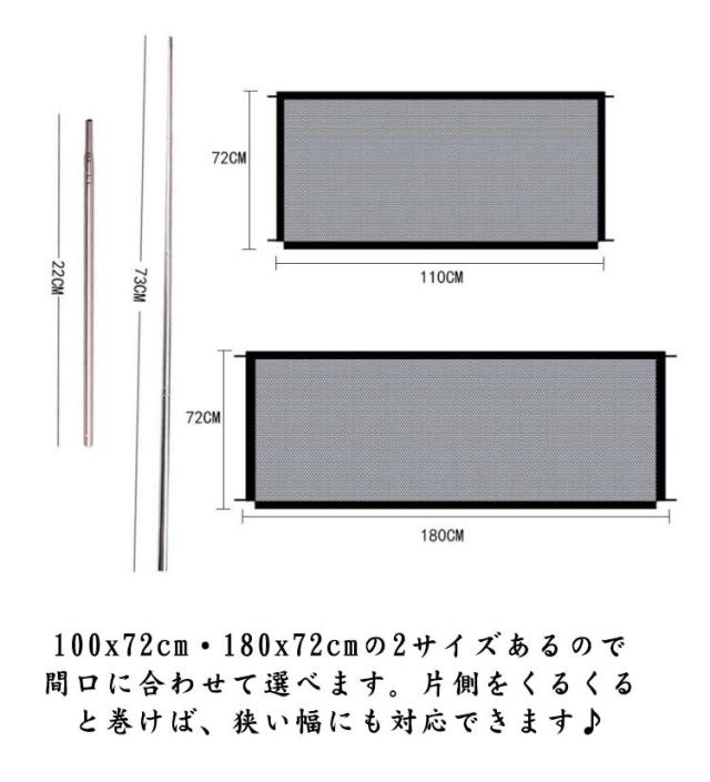 | メッシュタイプでぶつかっても痛くない!小型犬、老犬・おこさまにも優しいメッシュフェンスです! 100x72cm・180x72cmの2サイズあるので間口に合わせて選べます。片側をくるくると巻けば、狭い幅にも対応できます♪ 組み立てた後は突っ張るだけ!工具もねじも使わない。フックなど使用すれば車などのフェンスにも使用可能です。 メッシュタイプで優しいフェンス!隙間が少ないので足を挟みにくい安心設計です。 階段、キッチン、ダイニングルーム、出入り口、壁、階段、寝室、キッチンなどへの設置に最適です。 | |