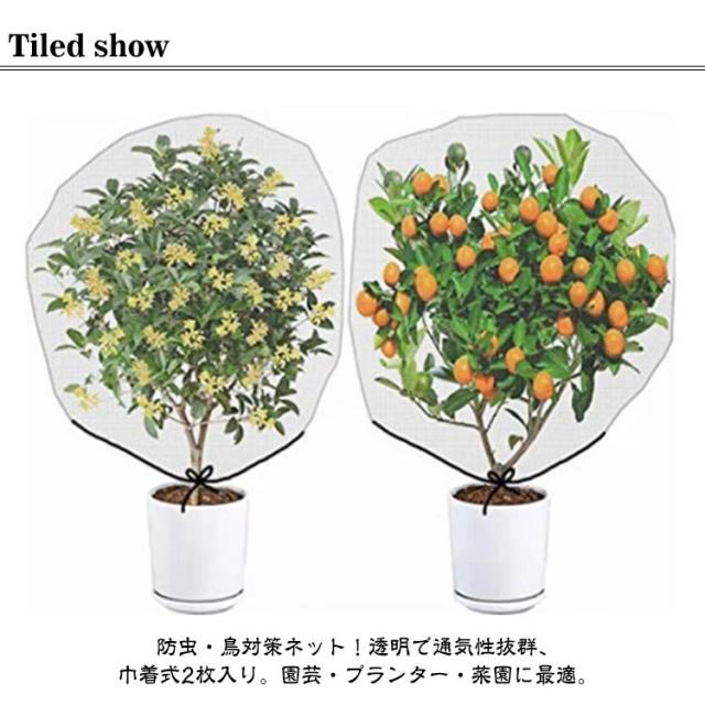 【2個セット】植物保護カバー 防鳥ネット 防虫ネット 園芸用ネット 鉢植え用 透明 プランター ベランダ 網 果樹園 みかん 菜園 DIY 鳥よけ ネット 花壇適用 野菜栽培 【2個セット】植物保護カバー 通気性 虫鳥除け網 ホワイト