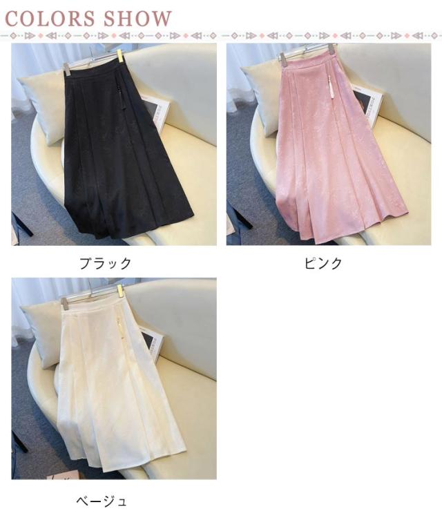 タックスカート ジャガード織り レディース スカート ロングスカート ミモレスカート ウェストゴム 送料無料 可愛い 花柄 Aラインスカート フリンジ タッセル タックスカート チャイナドレス