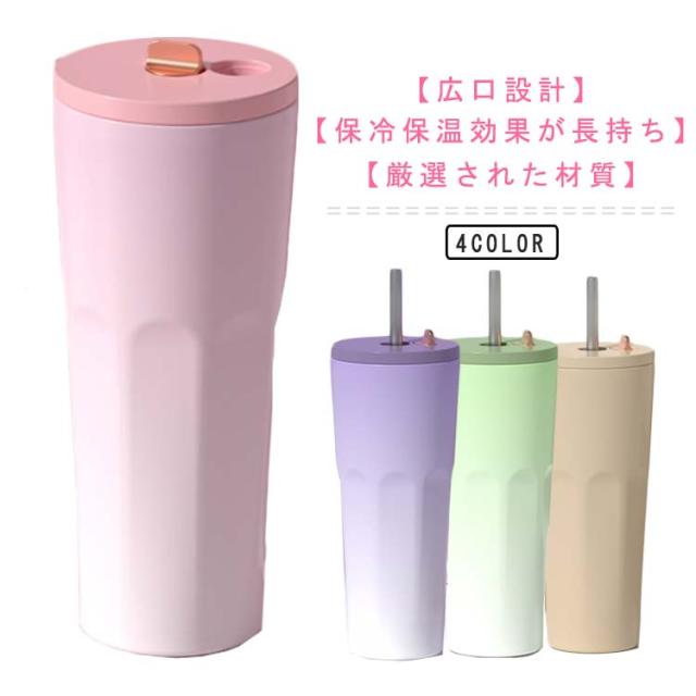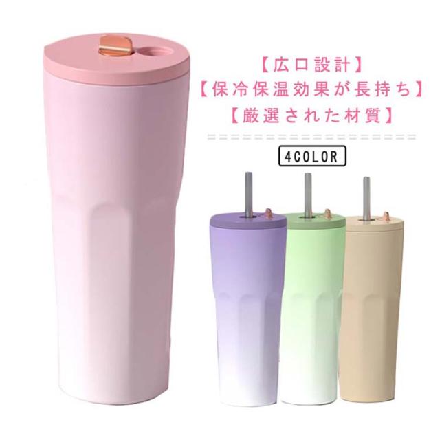 タンブラー ストロー付きタンブラー ストロー付き 蓋付き 真空 保冷 ストロー付きタンブラー 大容量 保温 断熱 コーヒータンブラー 700ml 水筒 おしゃれ グラデーション ストロー付き マグカップ こぼれない ステンレス 車載 スリム マグボトル 直飲み