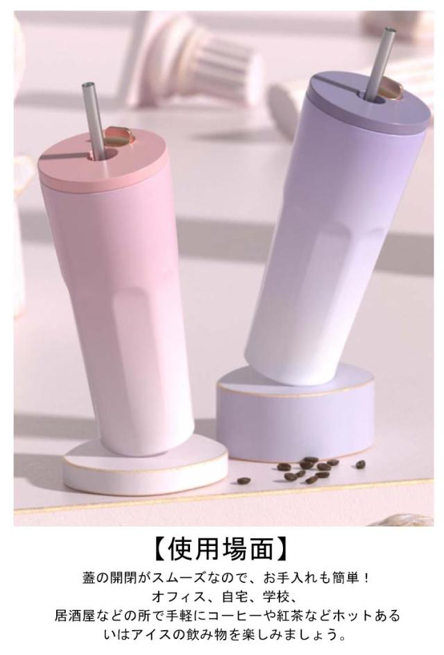 | ストローをいちいち取り出す必要ない、便利な伸縮ストロー付きタンブラー。 【厳選された材質】内瓶には高耐食304ステンレス使用で、コーヒーとか、お茶とか、牛乳とか、コーラとか、様々な飲み物対応するから、自身により好きな飲み物を入れて思う存分楽しめましょう。蓋はBPA材料を使用せず、無害・無毒であり、安心してご利用いただけます。 【保冷保温効果が長持ち】 二重真空の断熱構造、熱が逃げにくく、保温効果は約6時間で、保冷効果は約6時間です。夏でも冬でも、飲みごろ温度をキープします。コーヒーや炭酸水、どんな飲み物でも季節に合わせて使えます。 【広口設計】 蓋を外して、口径が広くて、大きめの氷も入れやすい 。また、蓋ユニットが簡単に取り外しできるので、スミからスミまで丸洗いでき、洗浄後の水切れにも優れています。 【こぼれない】ストローキャップを閉めると、タンブラーを逆さまや横置きにしても漏れないから、かばんの中に入れて持ち運びのに便利で安心◎ 【使用場面】 蓋の開閉がスムーズなので、お手入れも簡単!オフィス、自宅、学校、居酒屋などの所で手軽にコーヒーや紅茶などホットあるいはアイスの飲み物を楽しみましょう。 | |