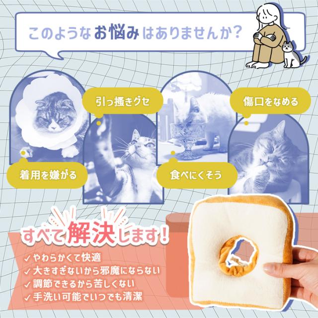 新作 選べる3サイズ ペット用品 食パン エリザベスカラー ペットグッズ ソフト トースト パン 軽量 軽い 猫用品 猫 ねこ ネコ 犬用品 犬 小型犬 術後 傷舐め 防止 クッション 柔らか かわいい 去勢手術