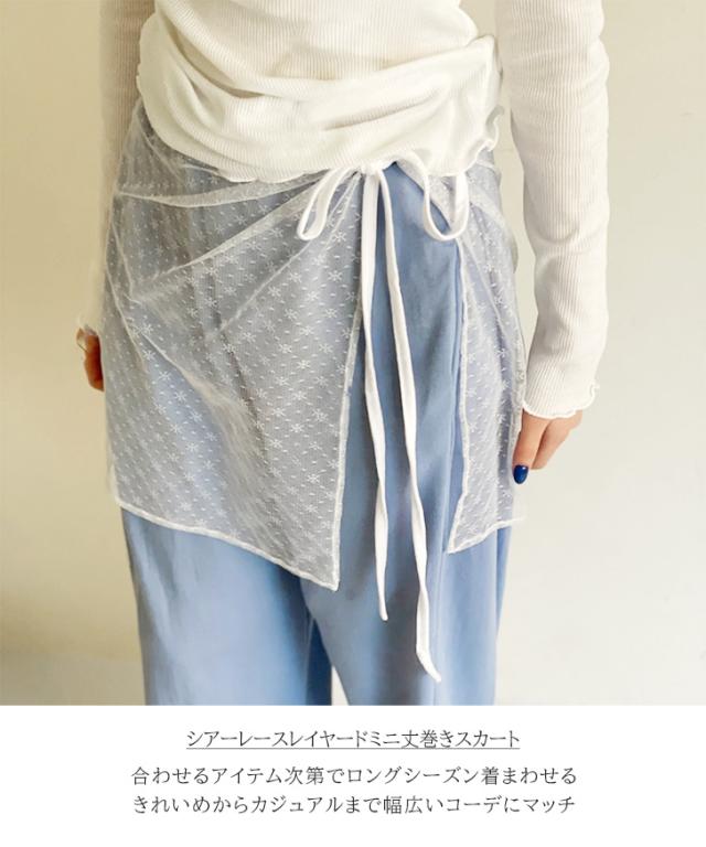 新作 シアーレースレイヤードミニ丈ラップスカート レディース スカート ボトムス 巻きスカート 巻き レイヤード 重ね着 巻くスカート ラップスカート 膝上 ひざ丈 チュール 透け シースルー 総レース ズボンの上