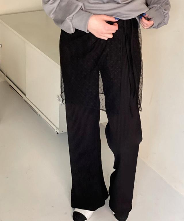 透け感のあるチュール素材でコーデに上品さをプラス