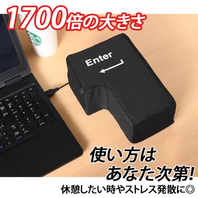 新作 1700倍の大きさ!ビッグエンターキークッション ストレス解消 巨大 大きい 枕 パソコン PC USB接続 おもしろグッズ デスクワーク クッション 休憩 お昼寝 インテリア プレゼント ギフト 贈り物 黒