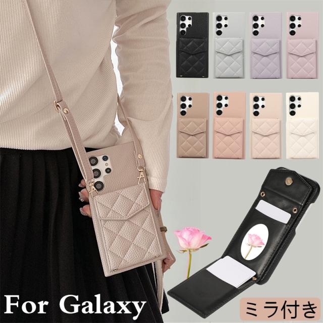 galaxy s24ウルトラスマホケース ショルダー SCG26 財布付き S25 Ultra S24FE S23FE 背面手帳型 GALAXY A25 A55 A54 A53 S23 S22Ultra S23FE 5G 携帯ケース おしゃれ カード収納 ギャラクシー S24ケース キルティング 化粧 鏡付き 財布型 女の子 携帯カバー
