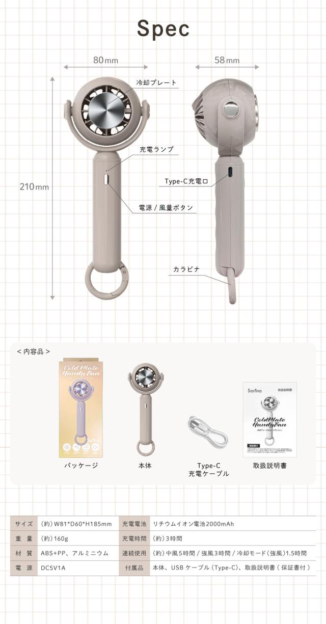 | 製品名 | SARINA 冷却プレート付 ハンディファン |