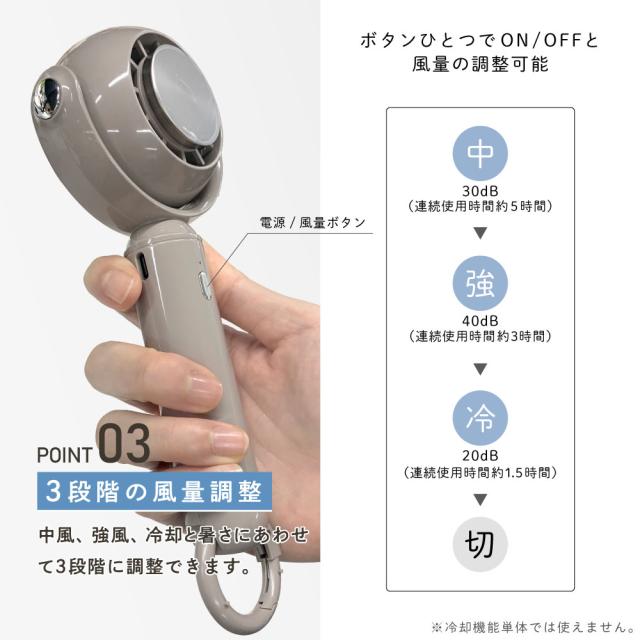 | 商品説明 | 2024年新発売!冷却プレート付 ハンディファンが登場しました! これまでになかった上下の角度調整が可能なミニ扇風機です。 手持ちはもちろんカラビナを活用して、ストラップをつけて首掛けにしたり、卓上扇風機にすることも可能。 また、3段階風量調節機能、冷却プレート付、静音設計、USB充電式など様々な嬉しいポイントがあります。 2024年の夏にぜひご活用ください! |
