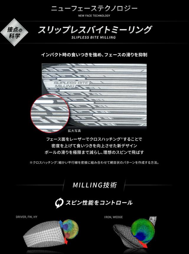 | ヘッド製法 | ボディ: ロストワックス精密鋳造、CNCミーリング、レーザー加工 クラウン: 熱圧成形(CFRP部) |