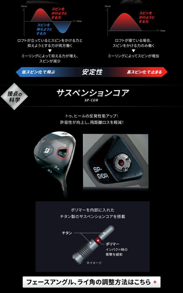 『B3MAX シリーズ』は、シンプルに構えやすいシェイプと機能美を実現しつつ、「接点の科学」から生みだされた、 インパクト時のボールの滑りを極限まで抑え、理想的なスピンで飛ばす独自のフェーステクノロジー「バイティングフェース」と、クラブヘッドを高機能化させる画期的な独自構造である「カーボンモノコックボディ」を搭載し、直進性が極めて高い 理想的な弾道を追求したモデルです。「カーボンモノコックボディ」による軽量化で生み出された 40g 超の余剰重量を ロフト別、モデル別に最適配分することによってゴルフファーのニーズに合わせた機能に特化させた設計に進化しています。