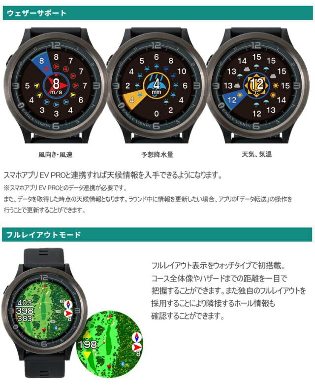 スマホアプリ EV PROとのデータ連携が必要です。また、データを取得した時点の天候情報となります。ラウンド中に情報を更新したい場合、アプリの「データ転送」の操作を行うことで更新することができます。