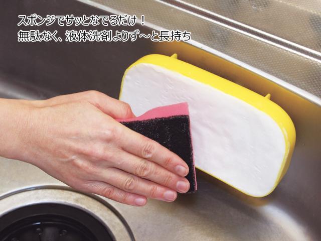 ●固形洗剤の表面をスポンジでサッとなでるだけ、適量の洗剤を素早くつけることができます。