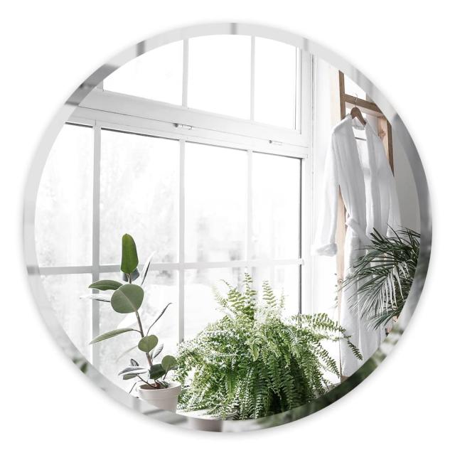 【フレームレス設計】ラウンドミラーは、1インチの面取りされたエッジがあり、直径21.7インチのフレームはありません。研磨されたエッジは、カットを避けるために滑らかで平坦です。