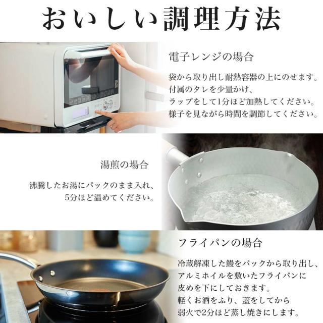 | 商品説明 | 簡易包装となります。 ギフト仕様ではないのでご自宅向けにご利用ください。また山椒やたれは付属しておりませんので必要な方はご用意ください。 ◆お召しあがり方:食べたい本数を取り出し、電子レンジや湯煎、フライパンで加熱してください。大きさもあるのでカットしてから湯煎すると調理しやすいです。器からはみ出るほどのうな重やうな丼、カットしてひつまぶしやお茶漬け、鰻巻きにするのもオススメです。 ◆要加熱商品です。 必ず温めてからお召しあがりください。一度解凍したものはできるだけその日のうちにお召しあがりください。 |