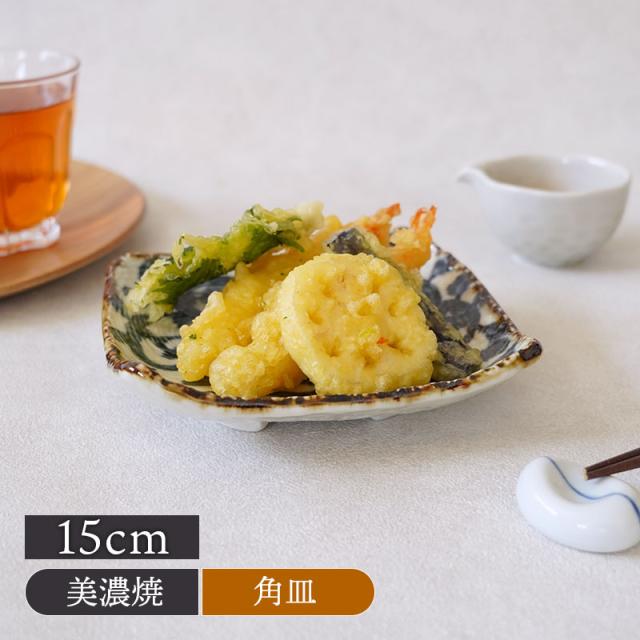 角皿 15cm 手書き染付タコ唐草 陶器 たこ唐草 プレート お皿 皿 食器 和食器 おしゃれ 中皿 取り皿 ケーキ皿 サラダ皿 デザートプレート パン皿 正角皿 スクエアプレート 和柄 柄物