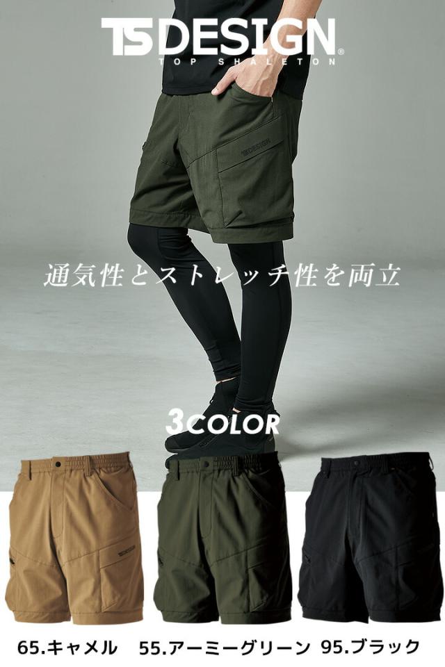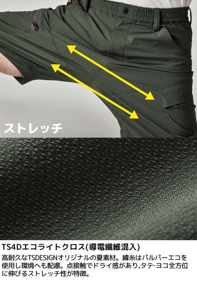 TSデザイン 作業服 ハーフカーゴパンツ ショートパンツ 50345 ニッカーズシリーズ エコライトクロス 春夏 ストレッチ 吸汗速乾 静電ケア エコ素材 ドライ素材 メンズ 作業着 藤和