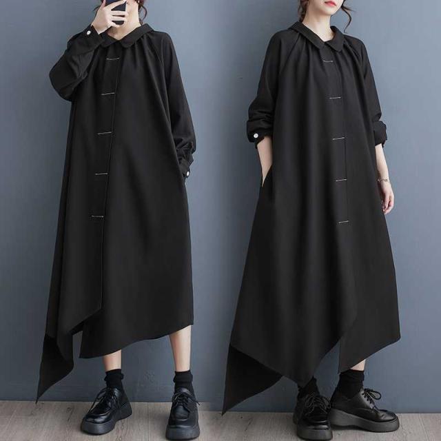 シャツワンピース レディース 長袖 モード系 シャツワンピ 個性的 不規則 アシンメトリー 大人 きれいめ ゆったり おしゃれ 黒 春夏